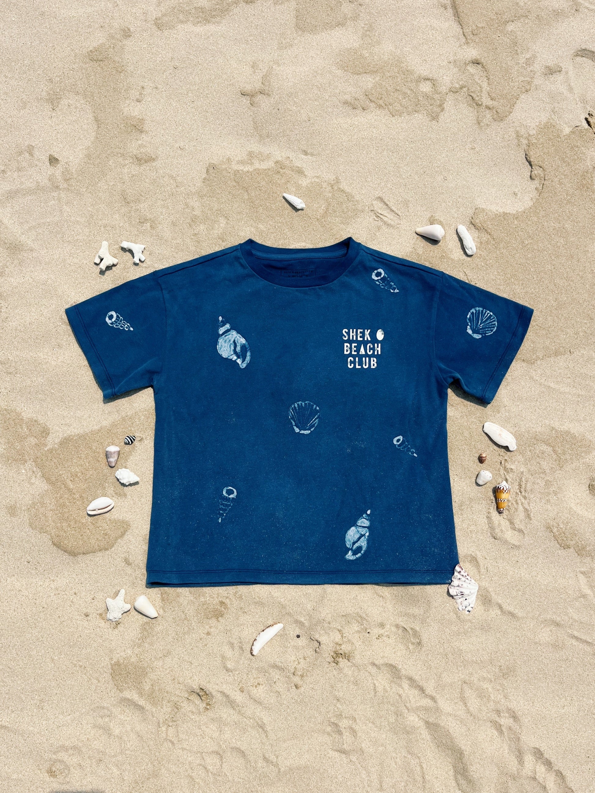 Inspired by our 8 year old founder, Emilia's love for shell collecting and treasure hunting. Each tee is unique and handcrafted using the traditional batik method and natural indigo dye.